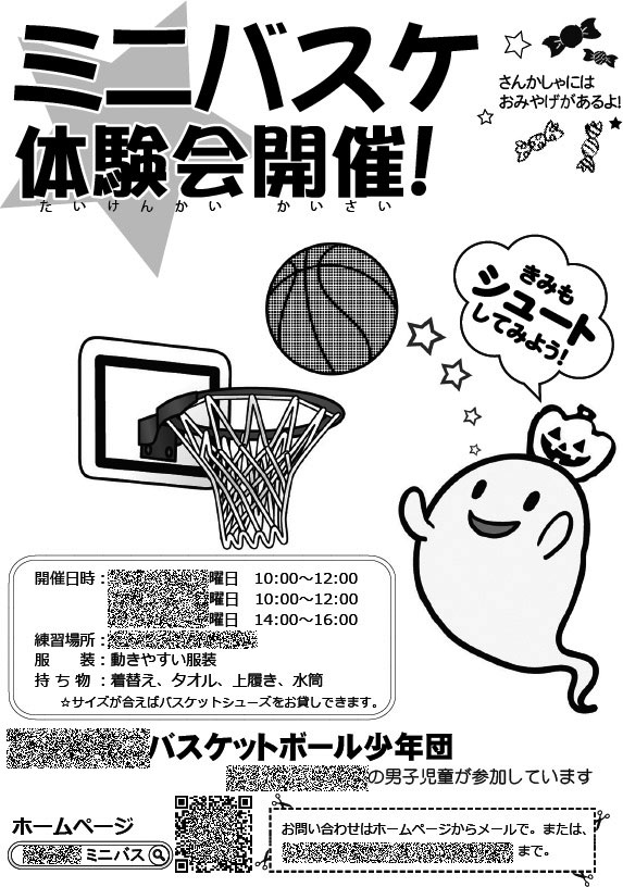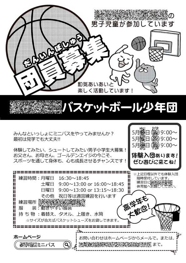 子供が所属していたバスケットボールのスポーツ少年団の団員募集チラシを作成しました。