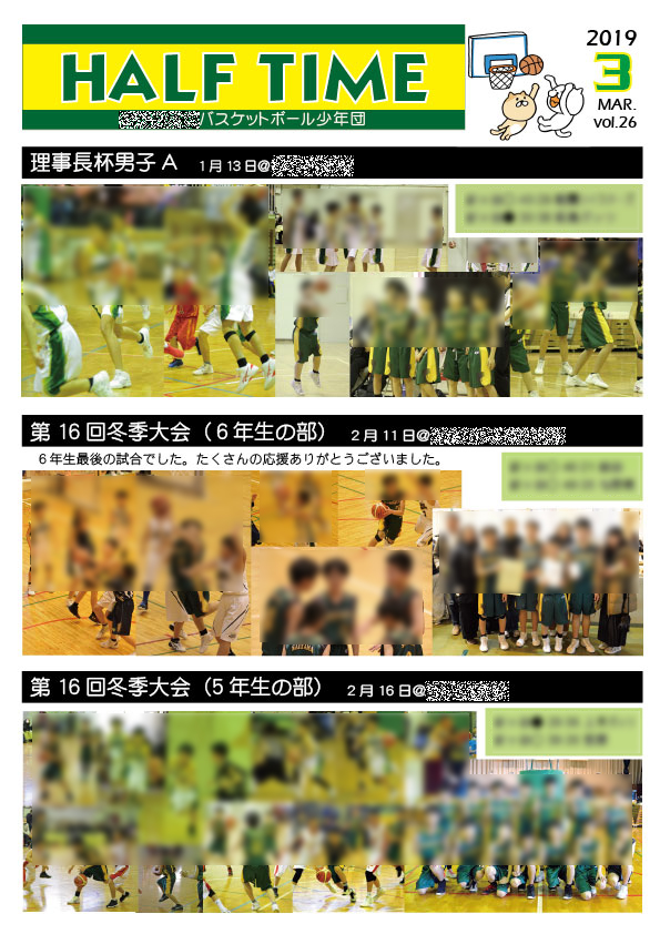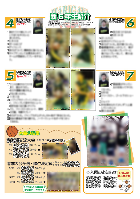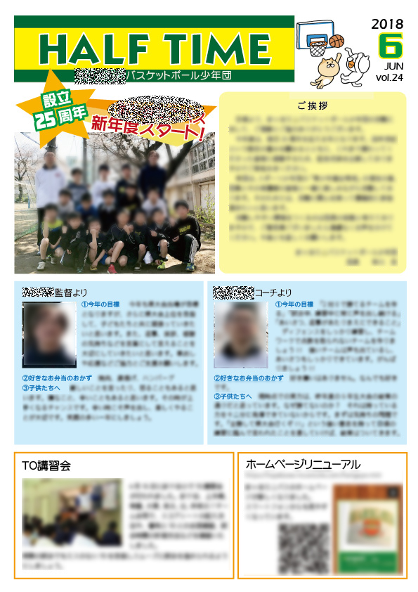子供が所属していたバスケットボールのスポーツ少年団の広報誌を一年間に3号分作成しました。
