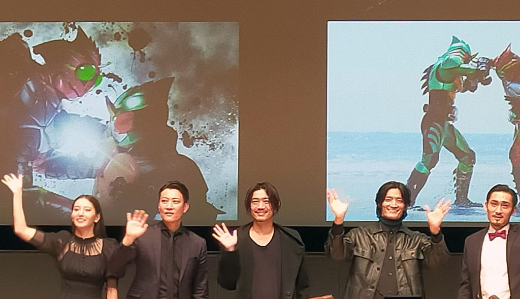 4人中2人が現行の特撮作品に出演中のためそのことをネタにしたり、それぞれ謎の変身ポーズをさせられたり、ゆる~い雰囲気でトークイベントが進む中、終盤になって突如仮面ライダーアルファ役の谷口賢志さんが登場! 会場大盛り上がり! 駆除班の面々が事前にTwitterで「トークイベントやります!」と告知していたところに、谷口さんが「・・・・・」と一人一人に無言の圧力コメントしていたのは伏線だったのね。